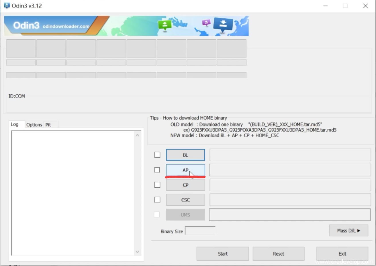 打开压缩包中的【odin3_v3.12.5】文件夹中的【Odin3 v3.12.5.exe】,点击【AP】