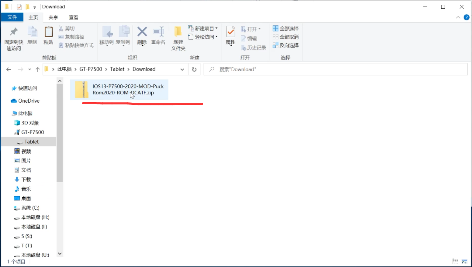重启后插上数据线到电脑,将刷机包中的【IOS13-P7500-2020-MOD-PuckRom2020-ROM-DCATF.zip】拷贝到平板存储硬盘的【Download】目录中