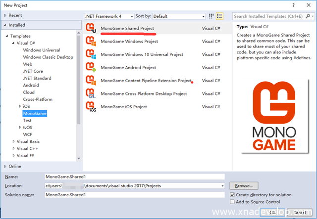 MonoGame项目模板新增Shared Project实现多平台共享代码