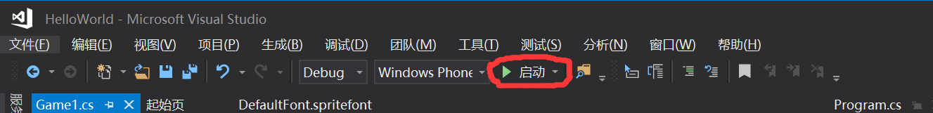 spriteBatch.DrawString(defaultFont, "这是我的第一个游戏", Vector2.Zero, Color.White);