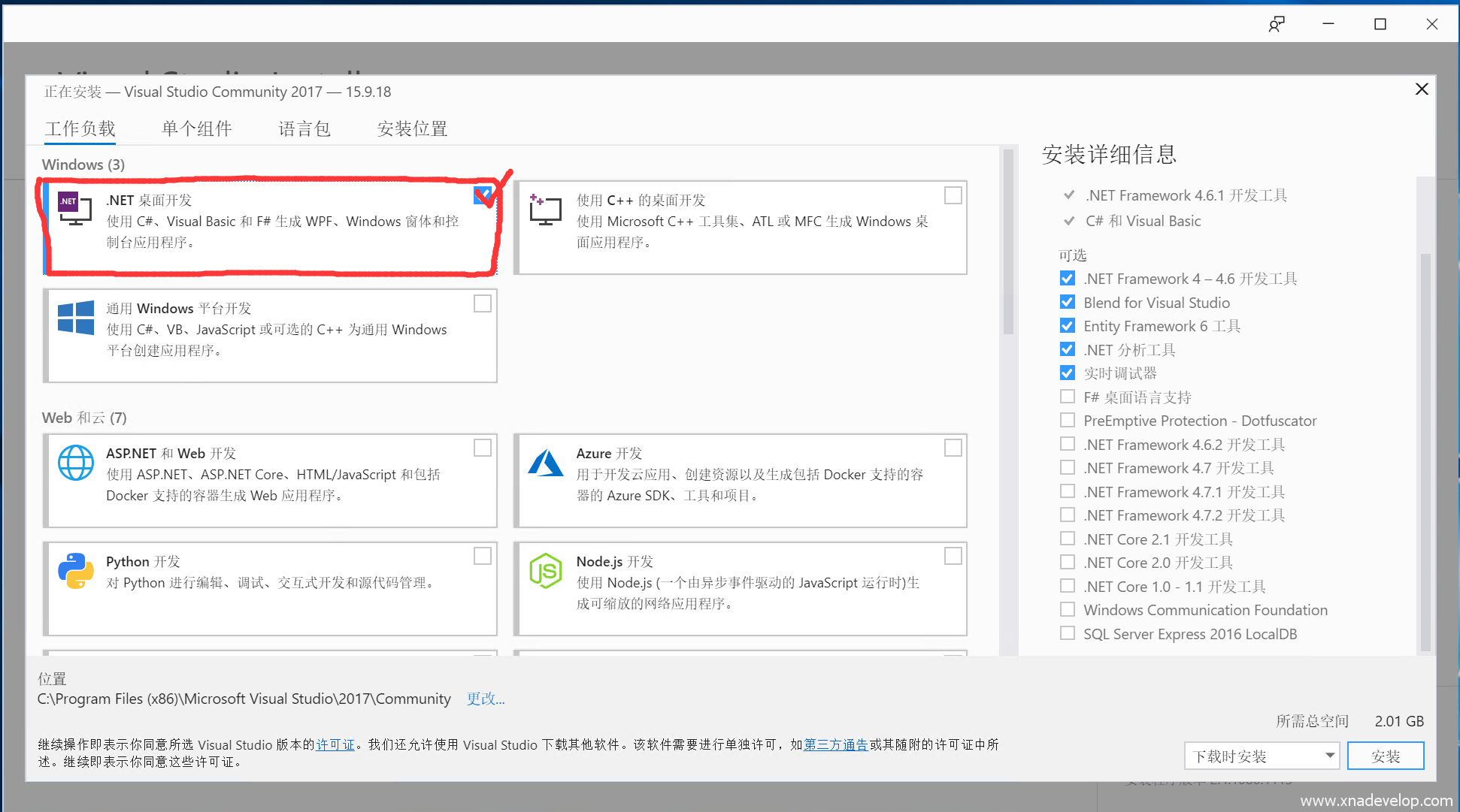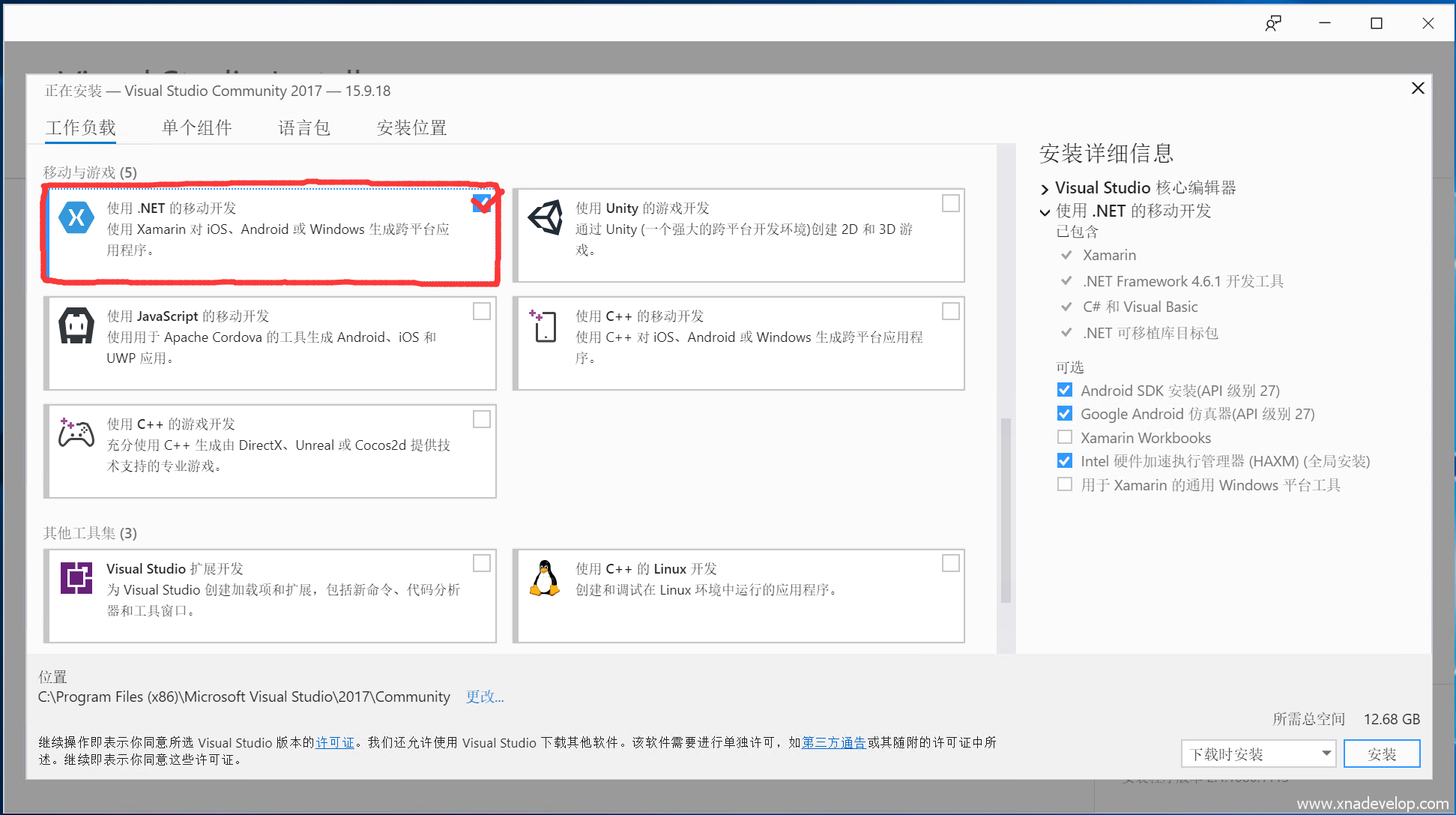 C#开发跨平台游戏——安装Visual Studio 2017