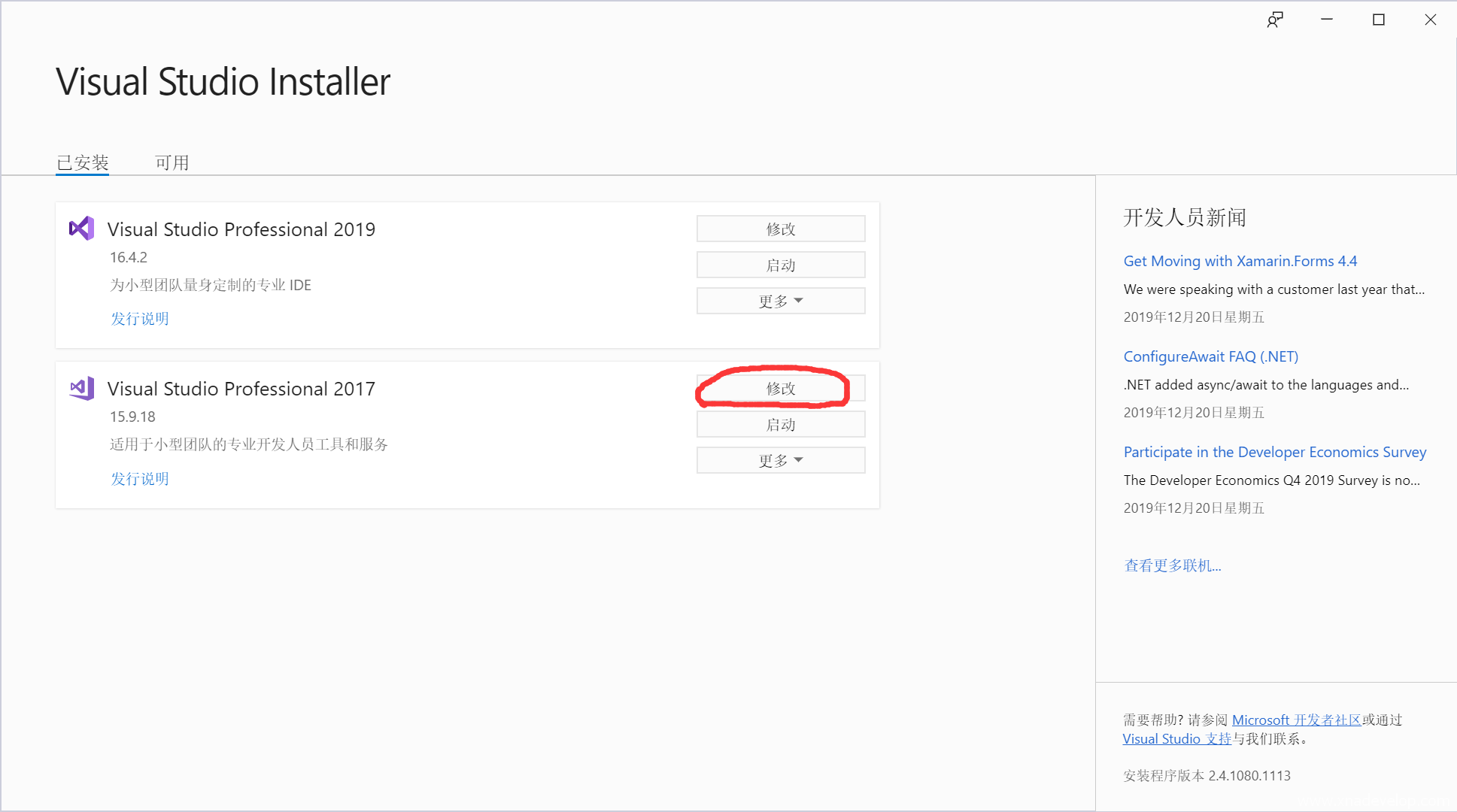 找到Visual Studio Community 2017或Visual Studio Professional 2017