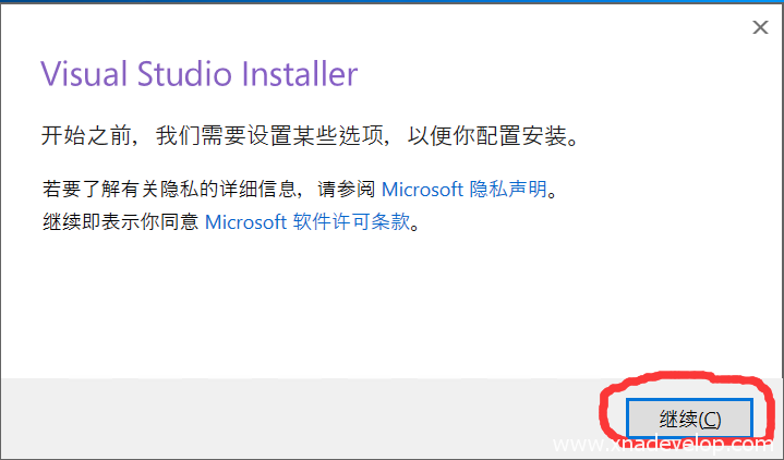 下载完成后,双击vs_community__xxxxxxx.exe.点击继续!