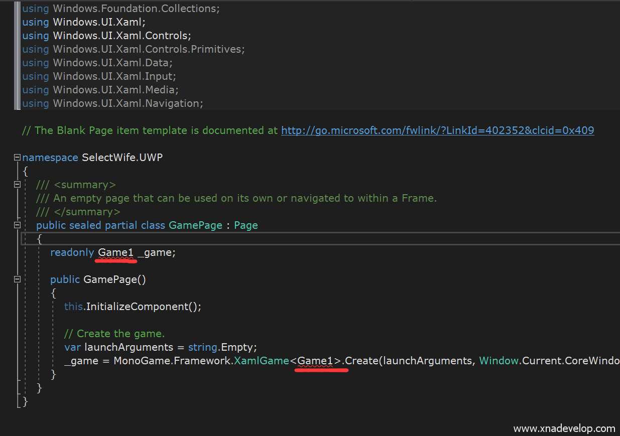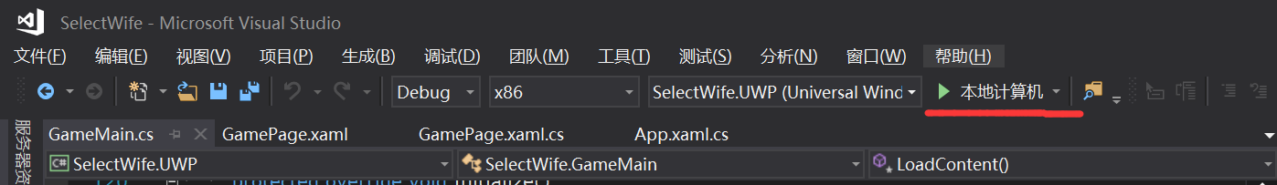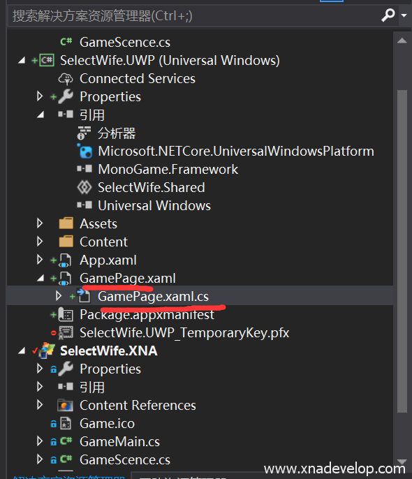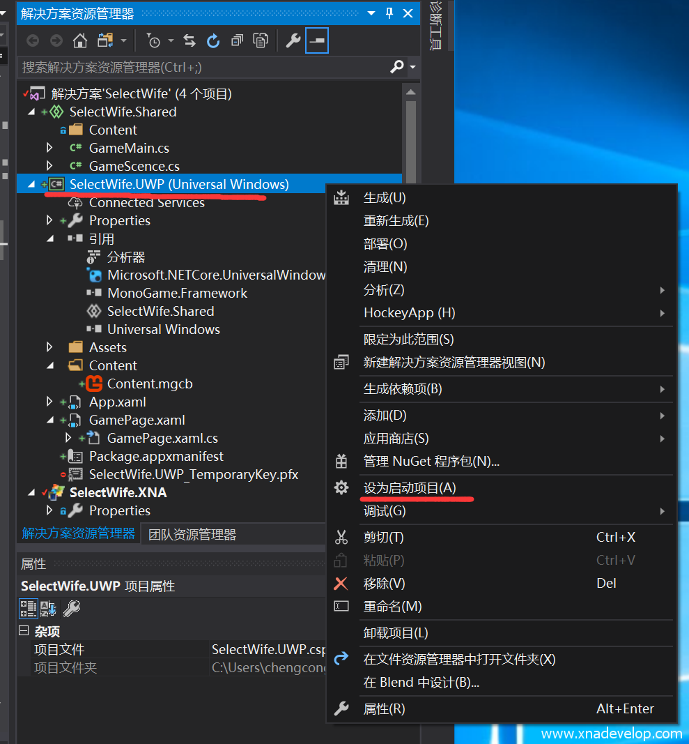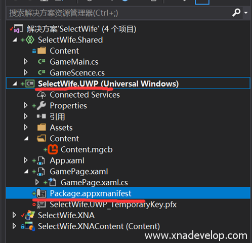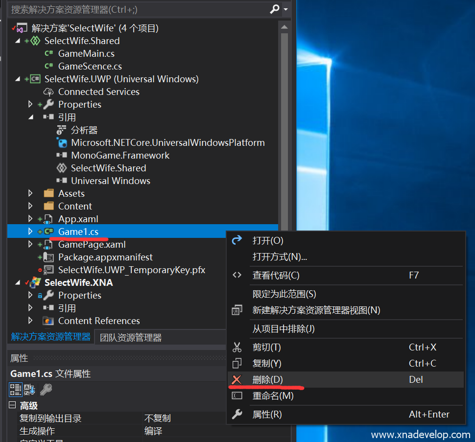 删除【SelectWife.UWP】和【SelectWife.Shared】项目中的Game1.cs文件