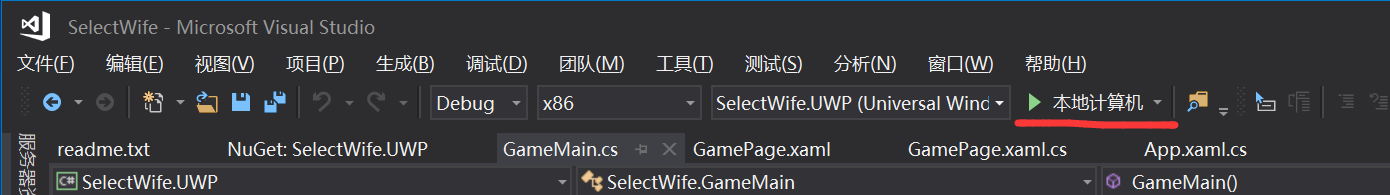展开【SelectWife.UWP】项目的GamePage.xaml,双击打开GamePage.xaml.cs
