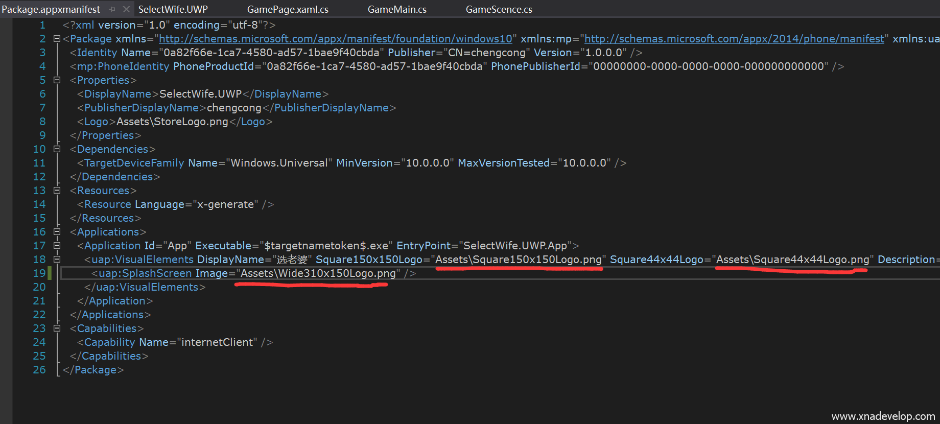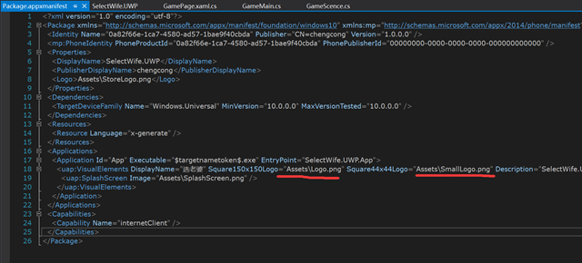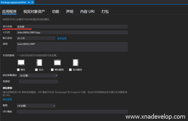 打开【SelectWife.UWP】项目的Package.appxmanifest文件