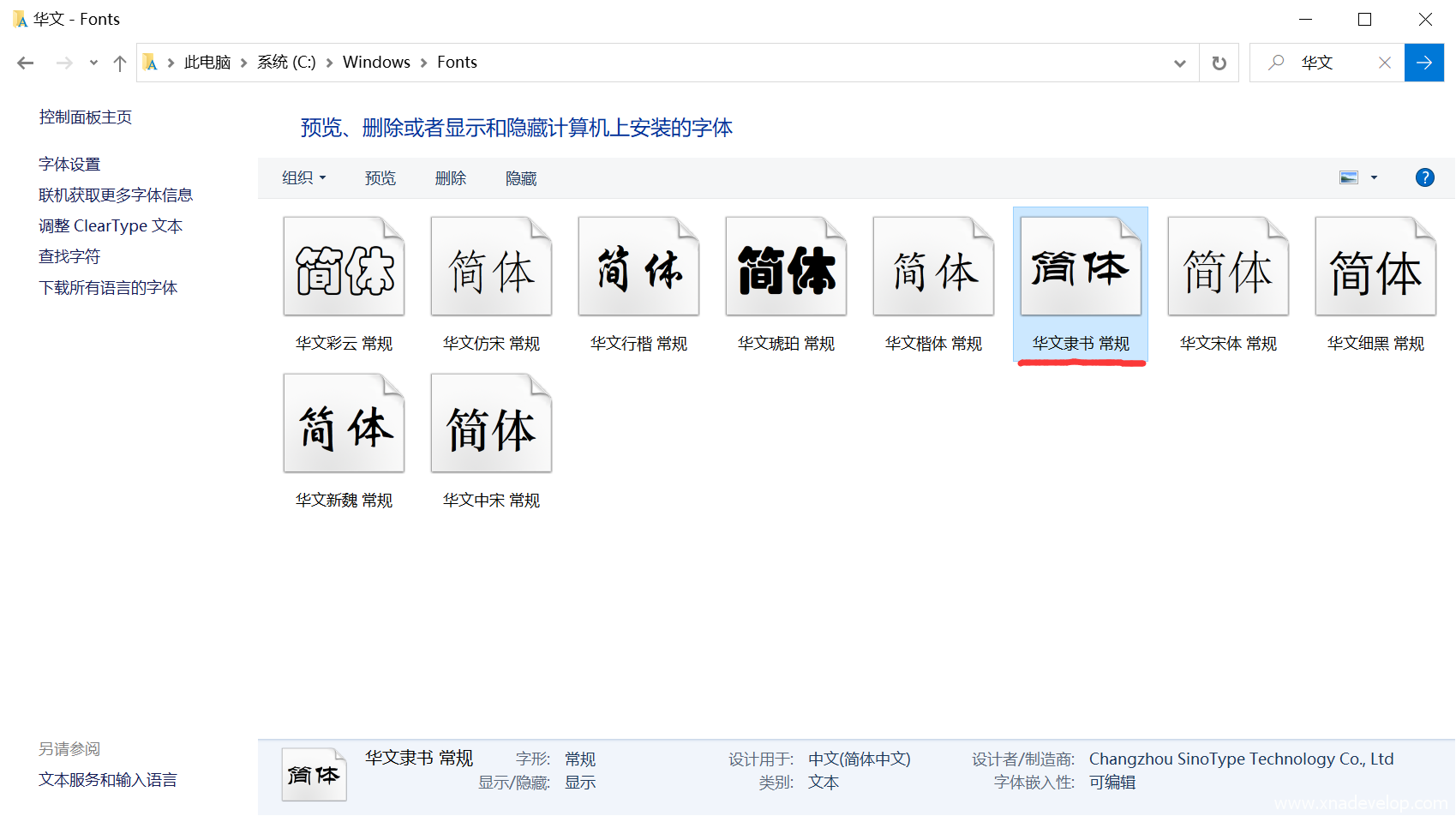 这里出现最常见的错误是AboutFont.spritefont无法Build。解决办法是打开电脑C盘C:\Windows\Fonts,搜索【华文隶书】