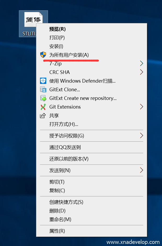 将【华为隶书 常规】复制到桌面,选中它点击鼠标右键【为所有用户安装】