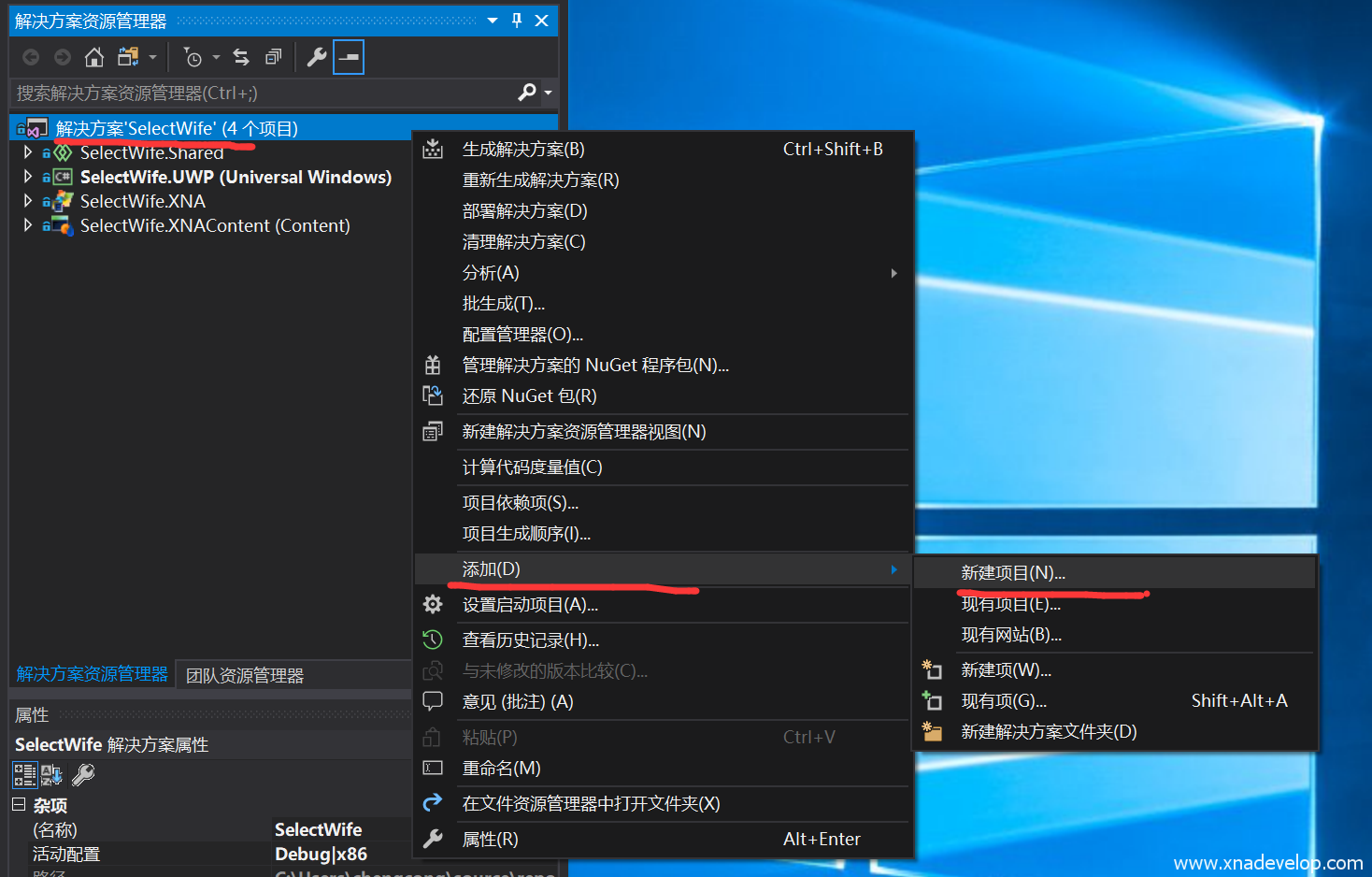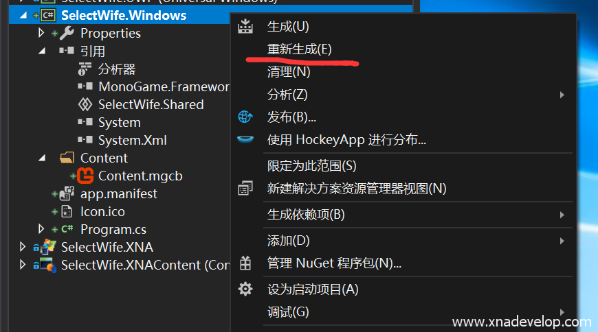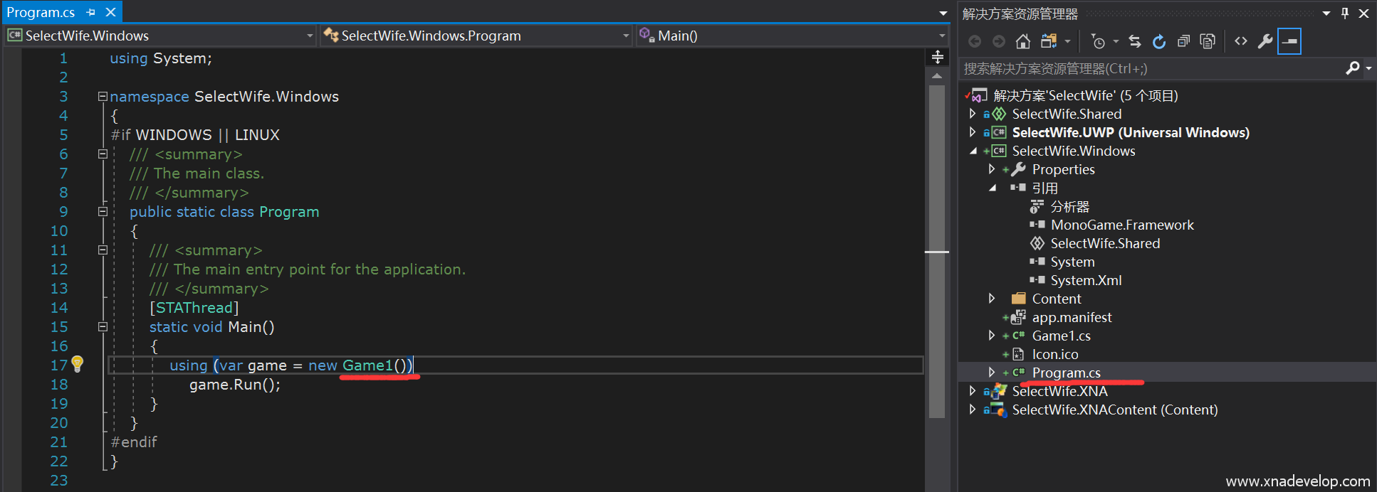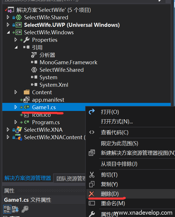 删除【SelectWife.Windows】项目中的Game1.cs文件