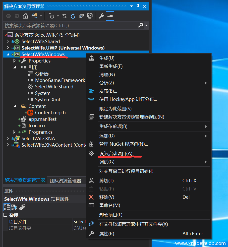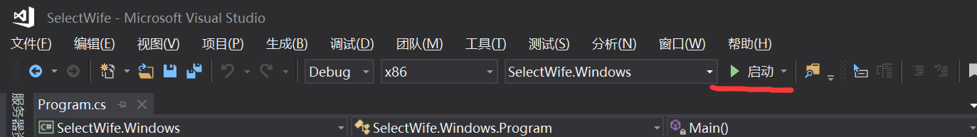选择【SelectWife.Windows】点击右键【设为启动项目】