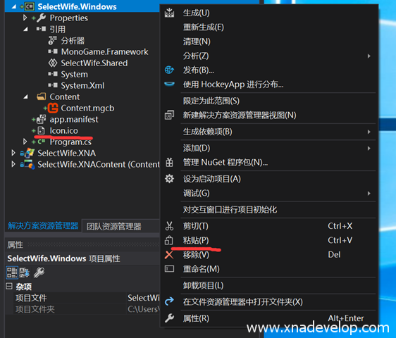 选择【SelectWife.Windows】项目,右键粘贴替换掉项目中原来的Icon.ico文件