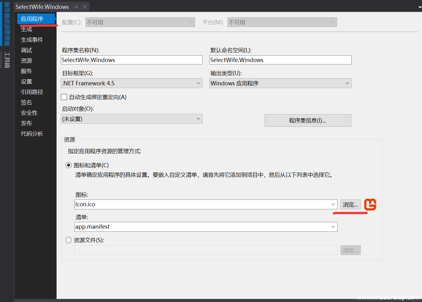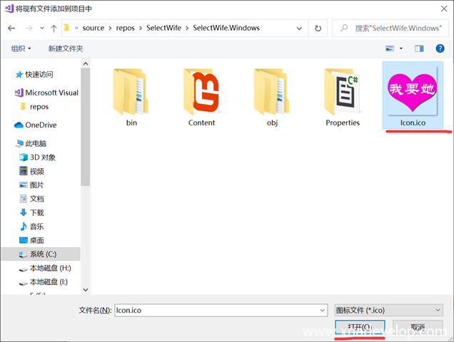 选择【SelectWife.Windows】项目根目录的Icon.ico图片,点击打开