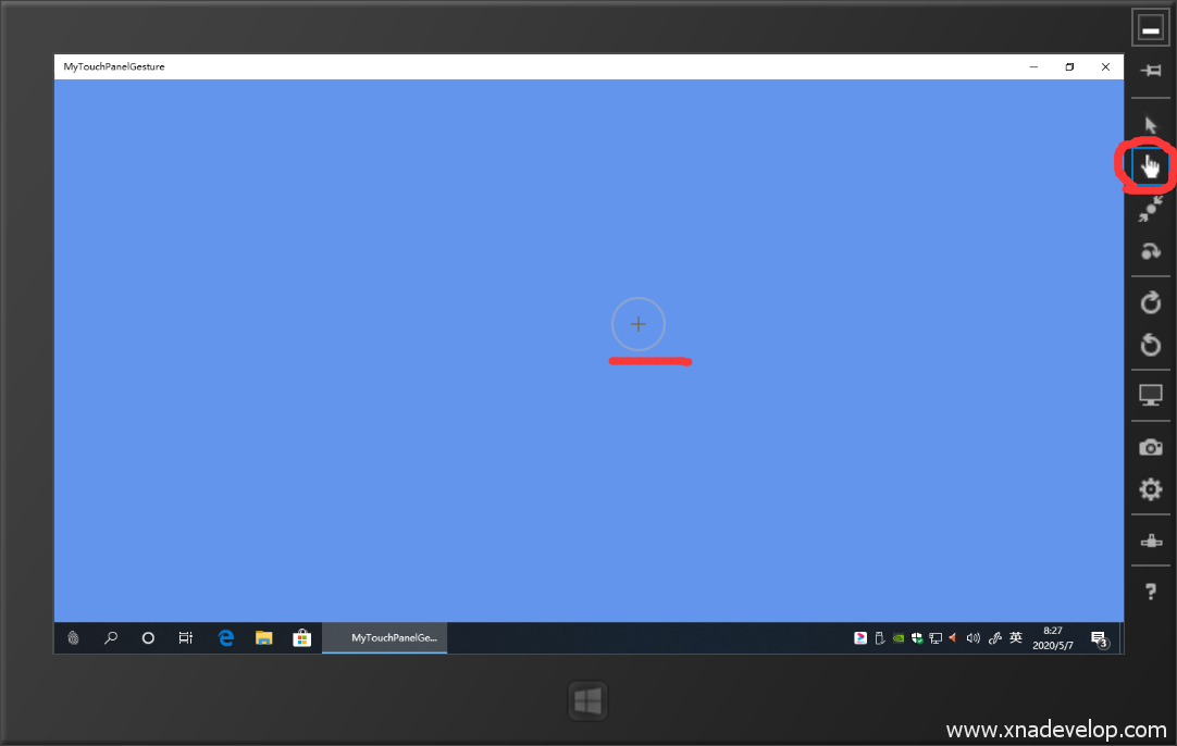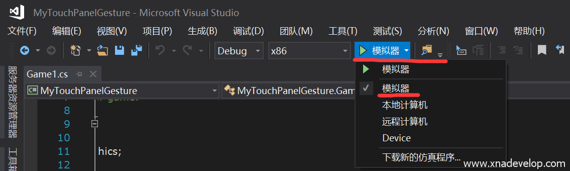 【MonoGame Windows 10 Universal(XAML)Project】提供的Windows10模拟器可以很好的测试手势操作,你也可以选择【MonoGame Android Project】【MonoGame iOS Project】只要你有一台带触摸的设备这些都不问题。