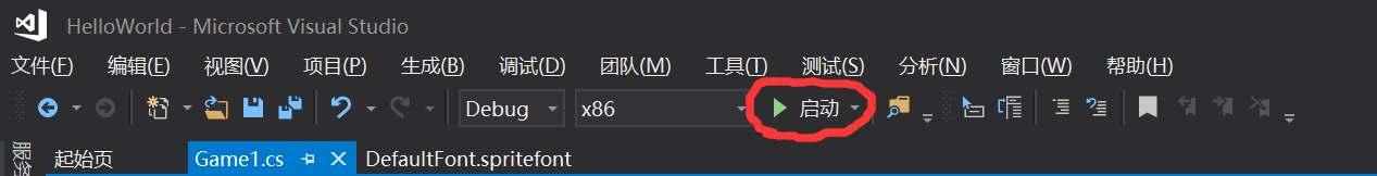 加入【graphics.IsFullScreen = true;】将游戏设置为全屏,点击【启动】