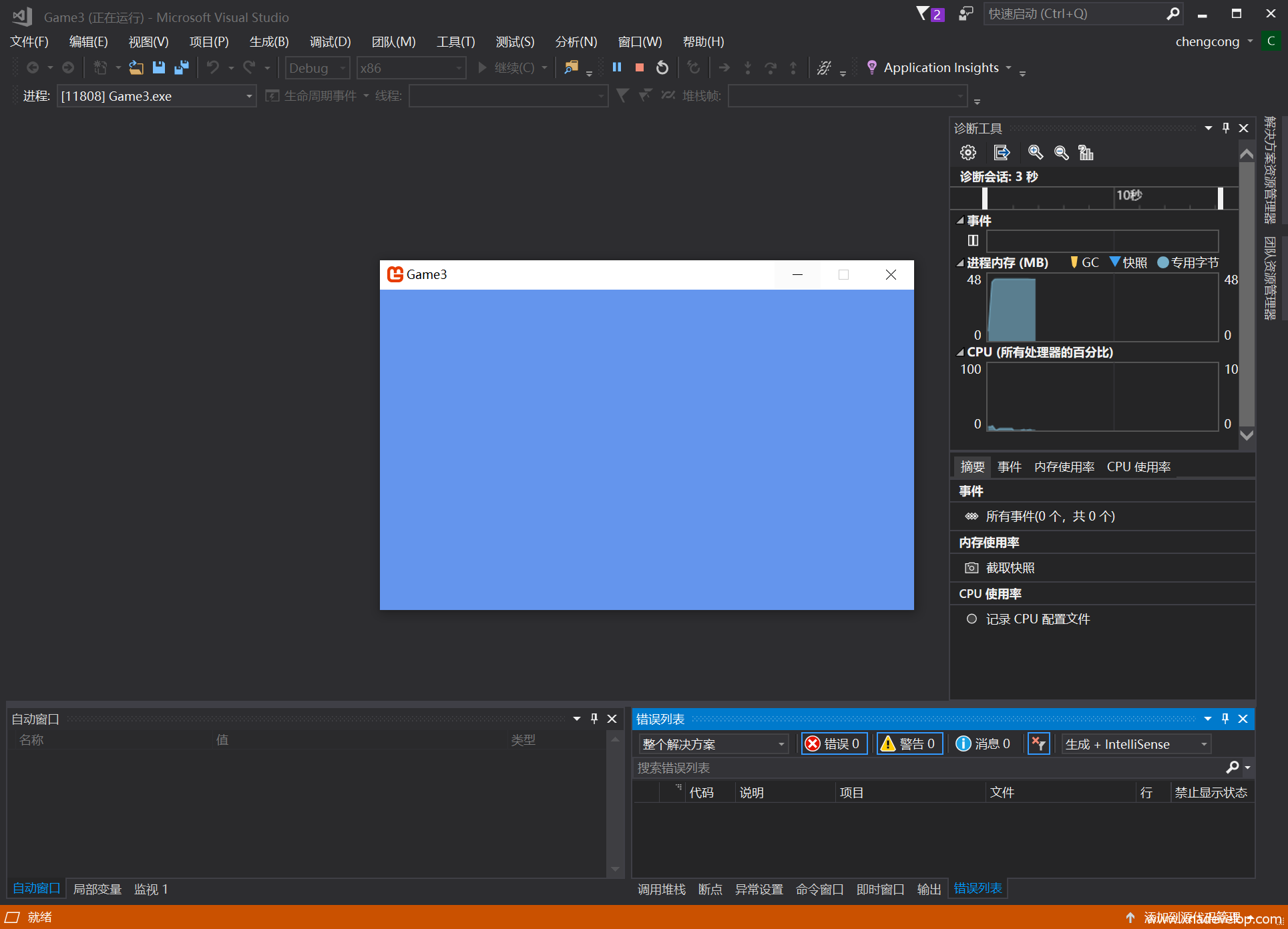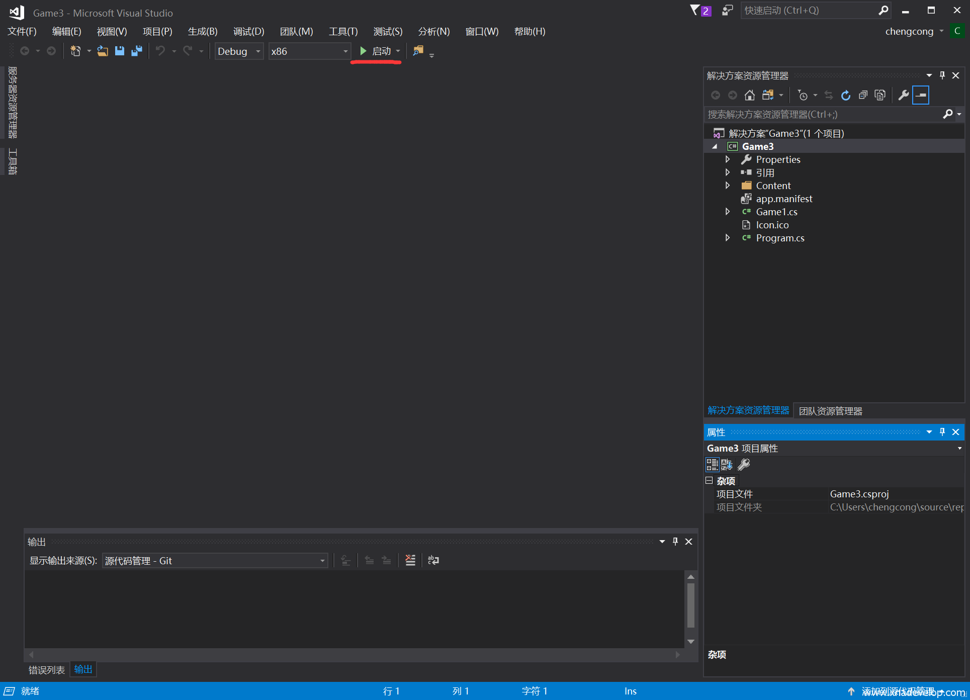 这时候会弹出一个蓝色窗口,这就是一个最简易的MonoGame windows桌面游戏!