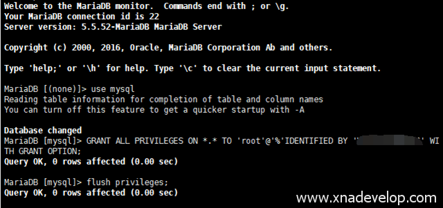 GRANT ALL PRIVILEGES ON *.* TO ‘root’@’%’IDENTIFIED BY ‘密码’ WITH GRANT OPTION;