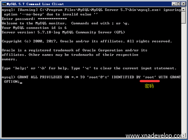 MySQL 5.7.x打开远程连接权限 发表于: 2017年4月24日 2017年4月24日 分类: 数据库 MySQL 5.7.x默认不允许远程连接,可以打开MySQL 5.7 Command Line Client 输入如下代码解决远程连接问题: GRANT ALL PRIVILEGES ON *.* TO 'root'@'%' IDENTIFIED BY '<<password>>' WITH GRANT OPTION; 文章导航 前一页 上一篇: MySQL升级到5.7.x Entity Framework 生成实体类出现StrongTypingException:The value for column ‘IsPrimaryKey’ in table ‘TableDetails’ is DBNull的解决办法后一页 下一篇: VMware导致windows需要禁止驱动程序签名才能启动否者蓝屏的解决办法 chengcong 476站点RSS订阅
