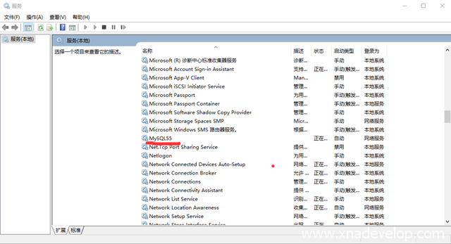3.重启MySQL。在Cortana搜索框输入services.msc打开服务管理器,选中MySQL右键【重新启动】即可