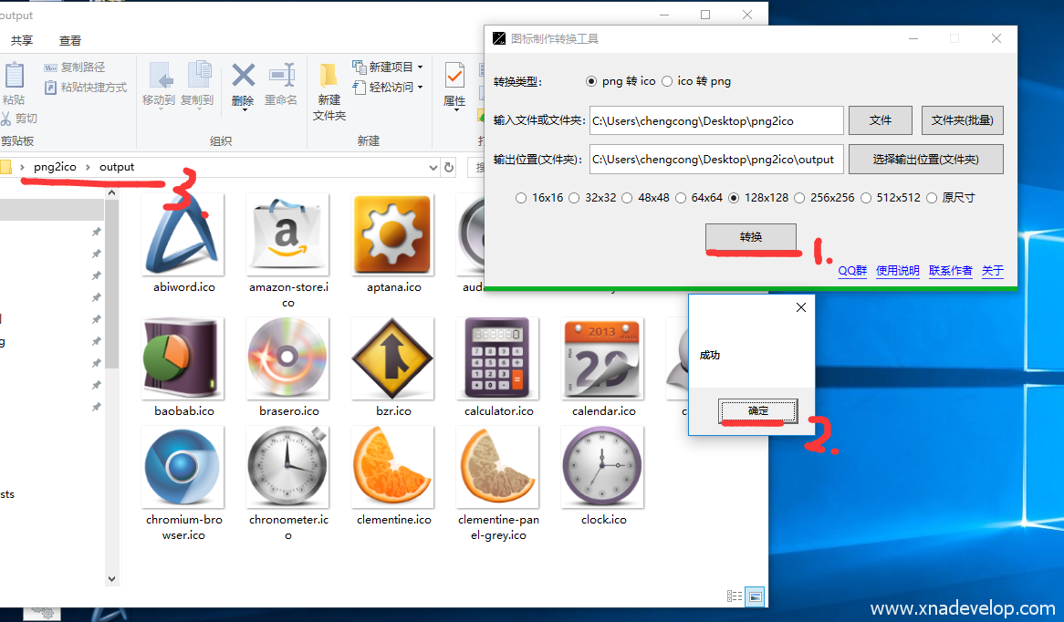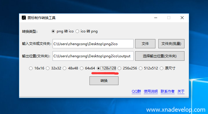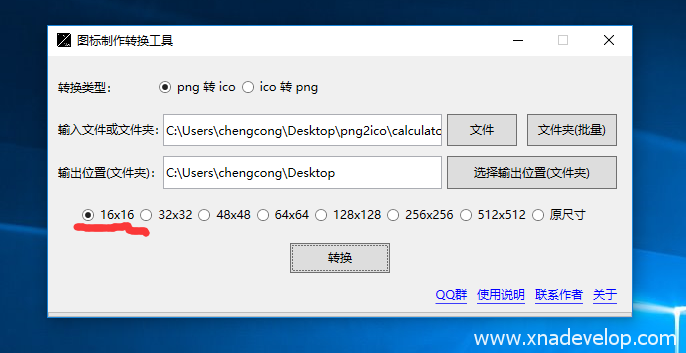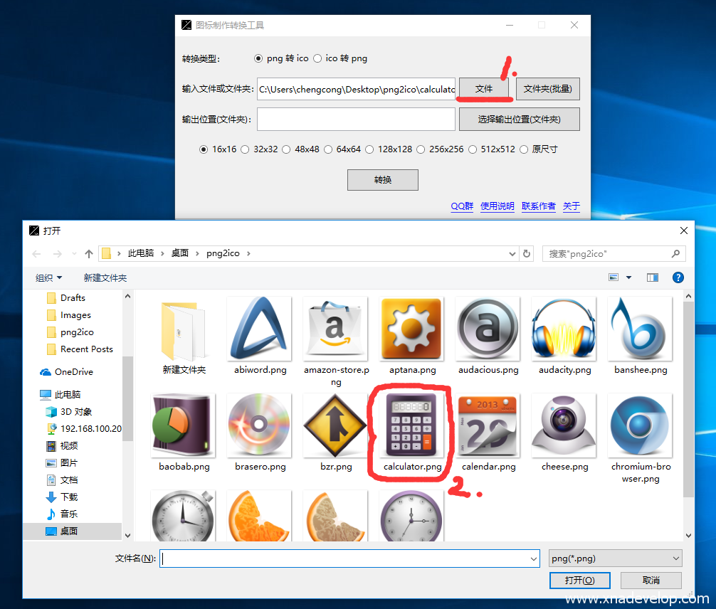《图标制作转换工具》支持png转ico,ico转png。支持单文件转换和批量转换。