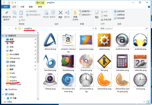 1.首先将需要转换的所有文件存放到一个文件夹中。图中,我将png图片存放在桌面的png2ico文件夹中。