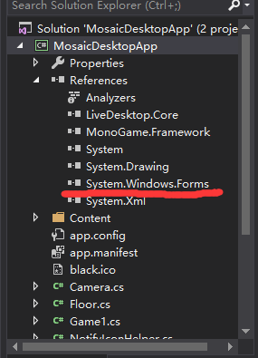 这里用到TitleContainer,需要添加名称空间Microsoft.Xna.Framework; white.ico改成Content