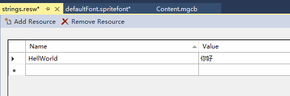 9.在MonoGameDisplayChinese新建增加strings.resw(UWP项目.resw,其他项目可以是.resx)
