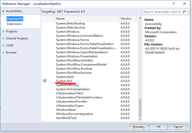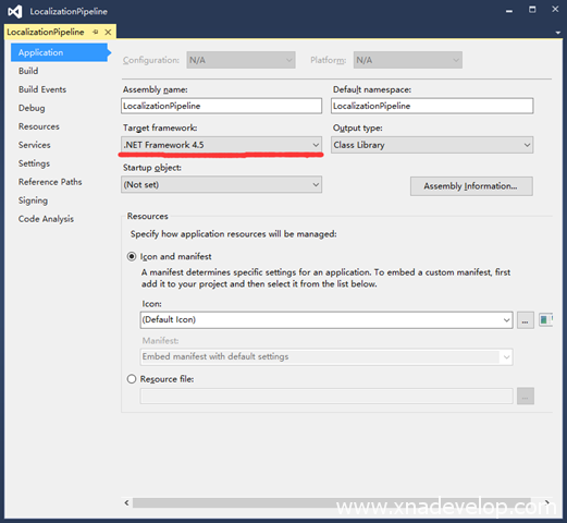 3.选中LocalizationPipeline项目点击右键选择Properties,.net 框架改成4.5