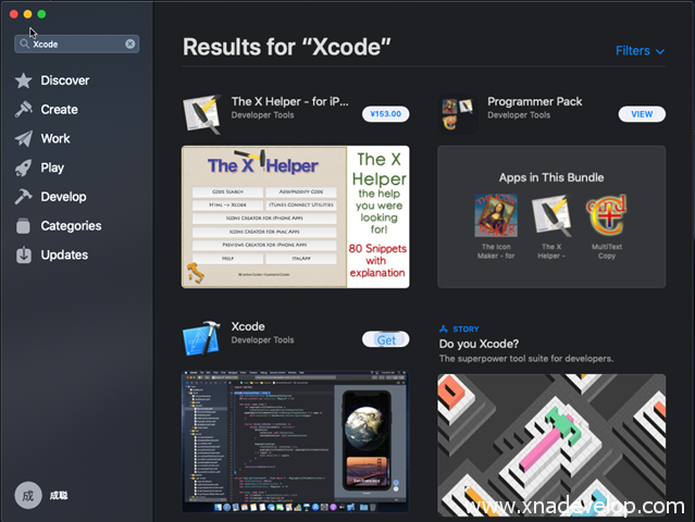 搜索【XCode】点击【Get】安装!