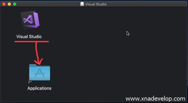 选中【Visual Studio】拖拽到【Applications】上,即可实现安装