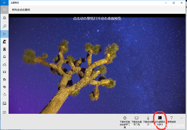 如果已经打开了动态桌面2.3.1.exe或以上版本,点击主题商店/动态桌面的设置动态壁纸功能,点击下图功能按钮