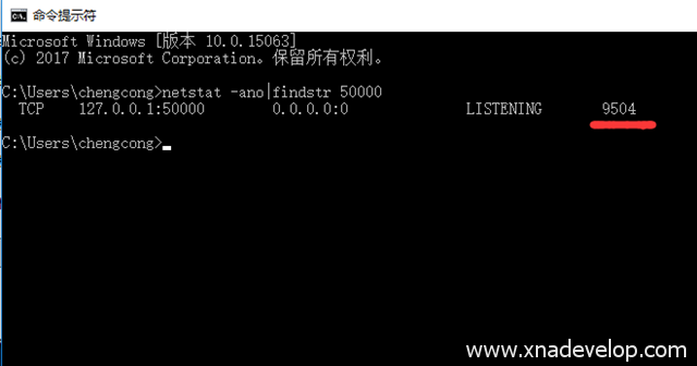 如果发现PID这列与命令提示符窗口内最后的数字相同,说明50000这个端口号被此程序占用,右键结束任务。