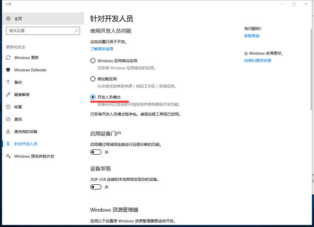 DEP0100: Please ensure that target device has developer mode enabled. Could not obtain a developer license due to error 800704C7 发表于: 2017年6月4日 2017年6月4日 分类: UWP 标签: UWP, 开发人员模式, 开发者模式 用Visual Studio 2017打开UWP项目如果调试运行出现以下错误: DEP0100: Please ensure that target device has developer mode enabled. Could not obtain a developer license due to error 800704C7 解决办法是windows10默认没有开启开发者模式,打开即可:【开始】【设置】【针对开发人员】选择【开发人员模式】 文章导航 前一页 上一篇: 取消jexus运行asp.net默认URL地址区分大小写后一页 下一篇: Windows2008 IIS 7 运行wordpress媒体中心上传文件图片出现HTTP错误的解决办法 chengcong 476站点RSS订阅