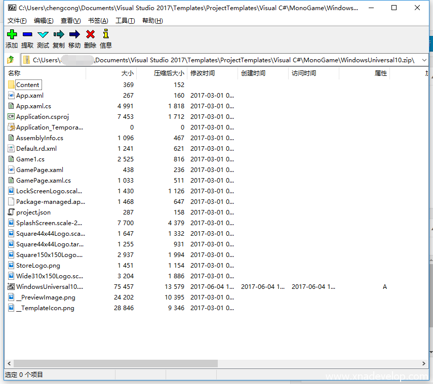 1.找到C:\Users\【当前用户】\Documents\Visual Studio 2017\Templates\ProjectTemplates\Visual C#\MonoGame