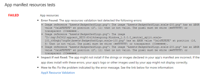 The pixel must be white (##FFFFFF) or transparent (00######) 发表于: 2017年6月8日 2017年6月8日 分类: UWP 标签: Badge Logo UWP使用Badge Logo很容出现The pixel must be white (##FFFFFF) or transparent (00######).错误报告被Windows Store拒绝。 Badge Logo这个图标要求纯白色和透明,图片中不能包含其他颜色,否则就会报这个错误。被拒绝。 文章导航 前一页 上一篇: MonoGame项目模板新增Shared Project实现多平台共享代码后一页 下一篇: MySQL表名区分大小写的配置方法 chengcong 478站点RSS订阅