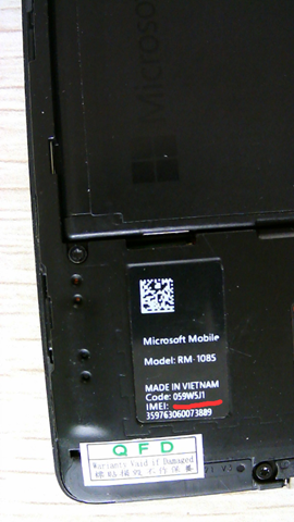 拆开Lumia950XL手机的后盖,记录下型号:RM-1085,产品编号(Product code)059W5J1。