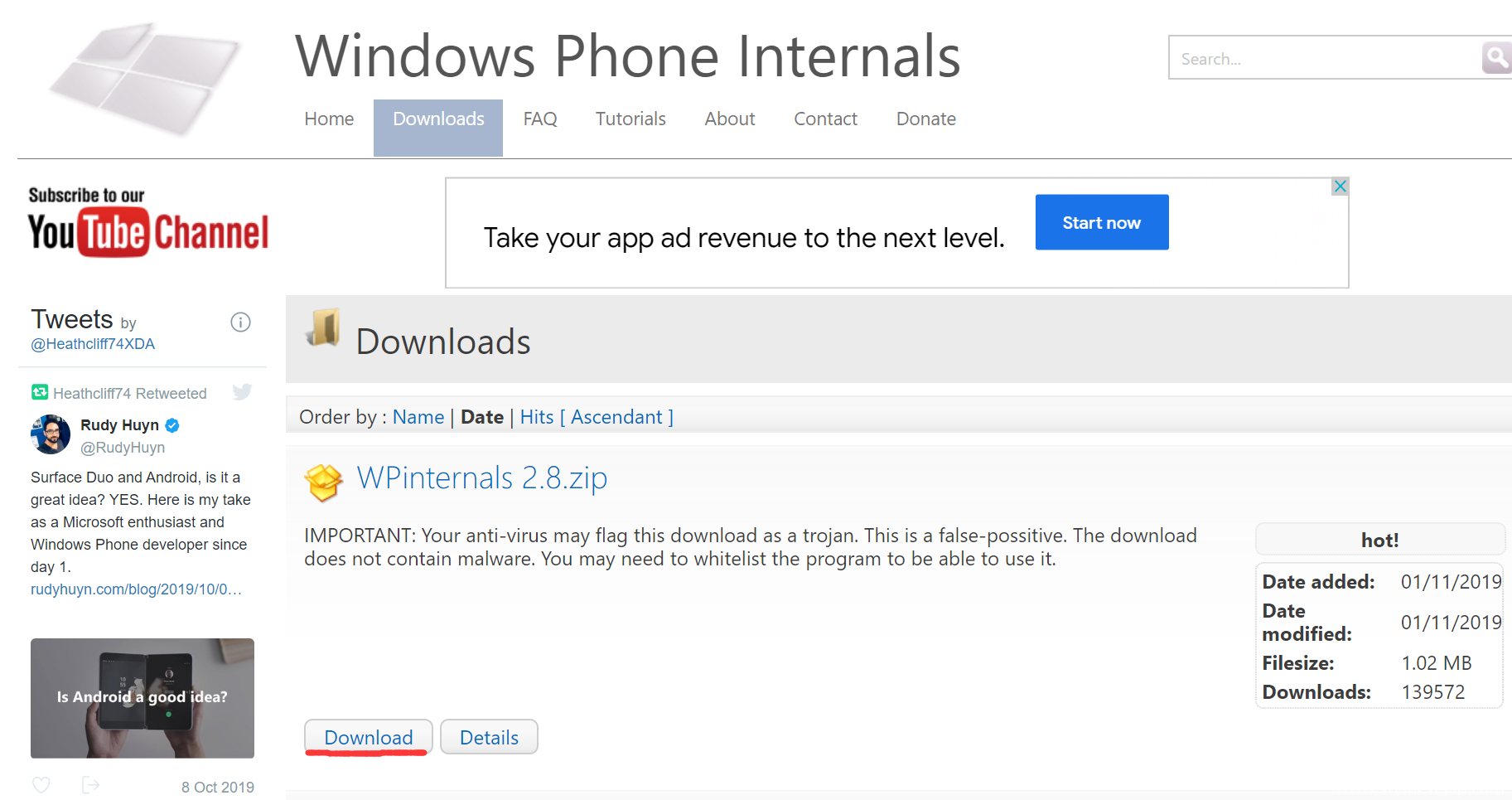 打开网址:https://www.wpinternals.net/index.php/downloads,点击【download】
