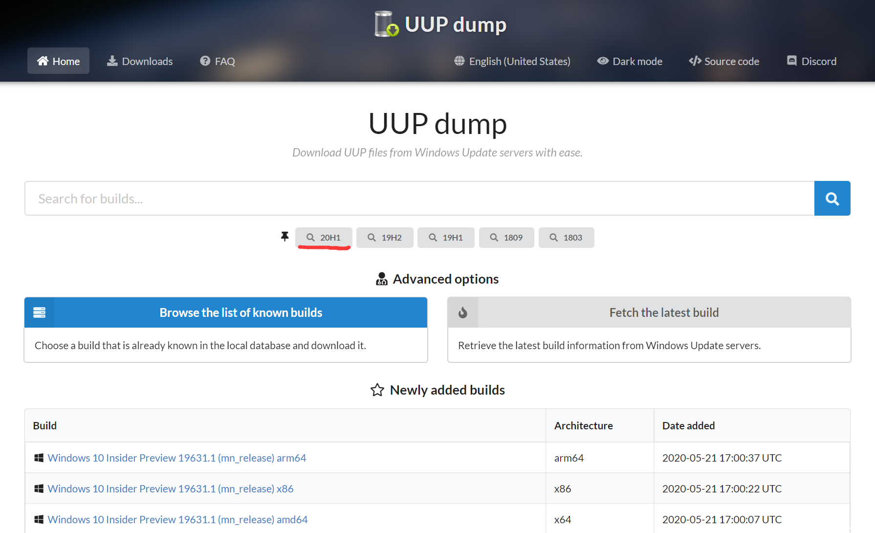 经过测试20H1支持Lumia950XL,所以点击【20H1】