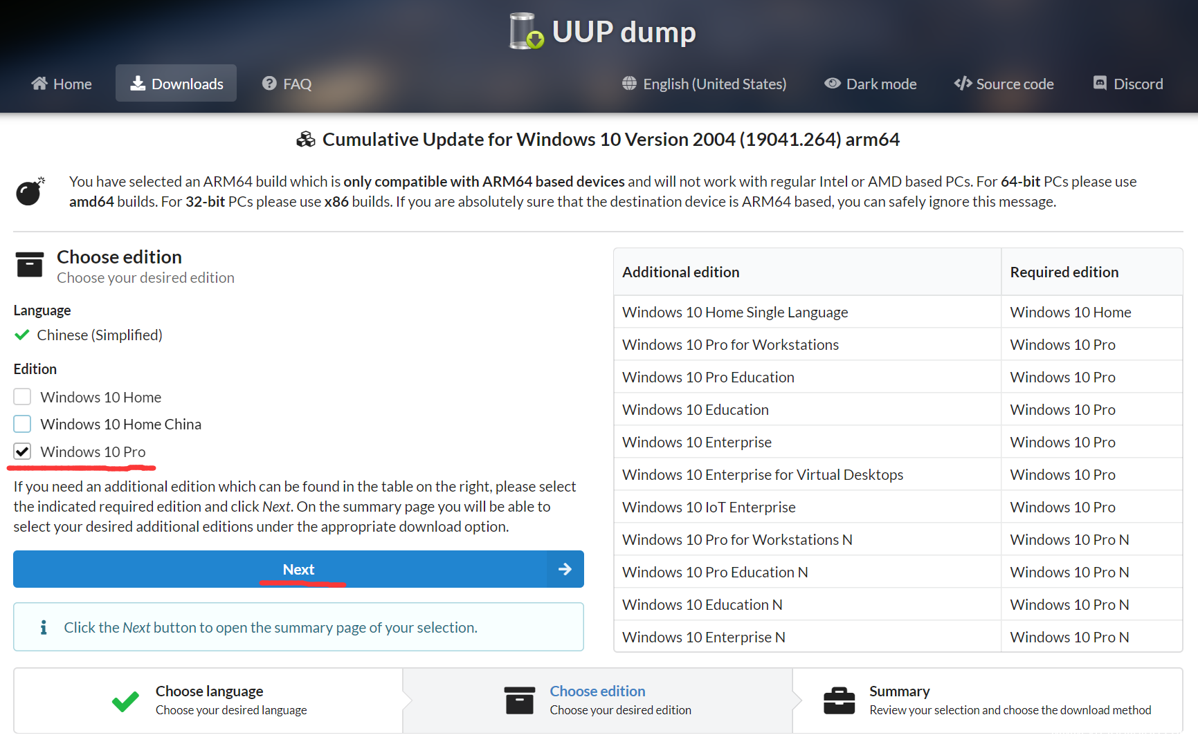 减少安装镜像的大小,选择只勾选【Windows 10 Pro】,点击【Next】