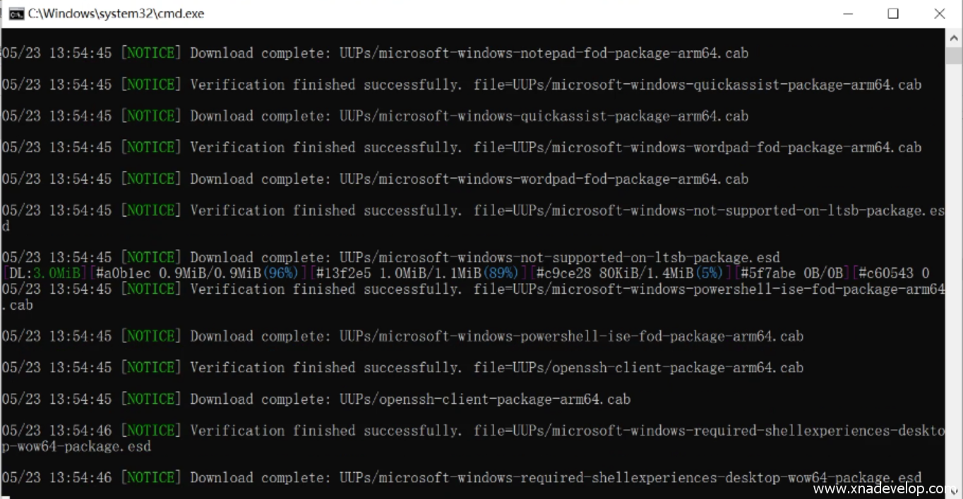 这时候会出现一个【UUPs】目录,里面会下载一堆esd和cab文件,当所有的下载完成会合成iso安装镜像。时间非常久,请耐心等待!