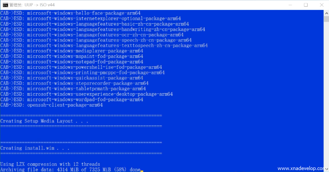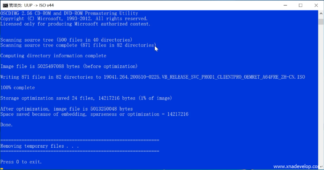 Windows10ARM的镜像文件下载完成,按0关闭这个蓝色窗口