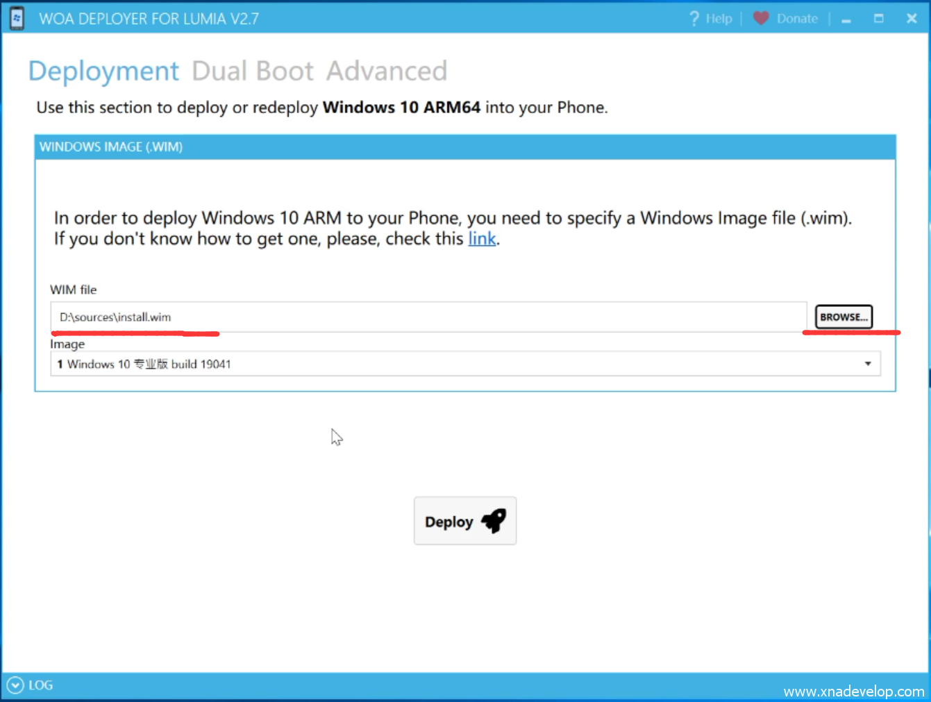 点击【BROWSE…】,选择装载镜像中的sources目录的install.wim文件