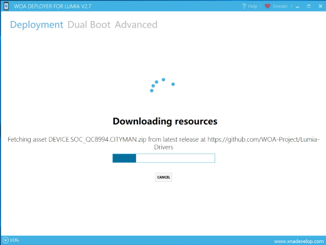 下载驱动,这个阶段时间非常长,由于驱动是从国外服务器上下载,容易出现网络错误。出错以后WOA.Deployer的安装目录会删除所有原先下载的驱动,所以需要重新点击 【Deploy】,重新开始