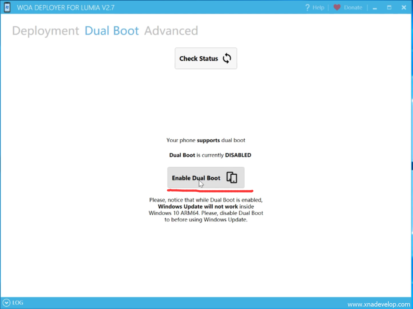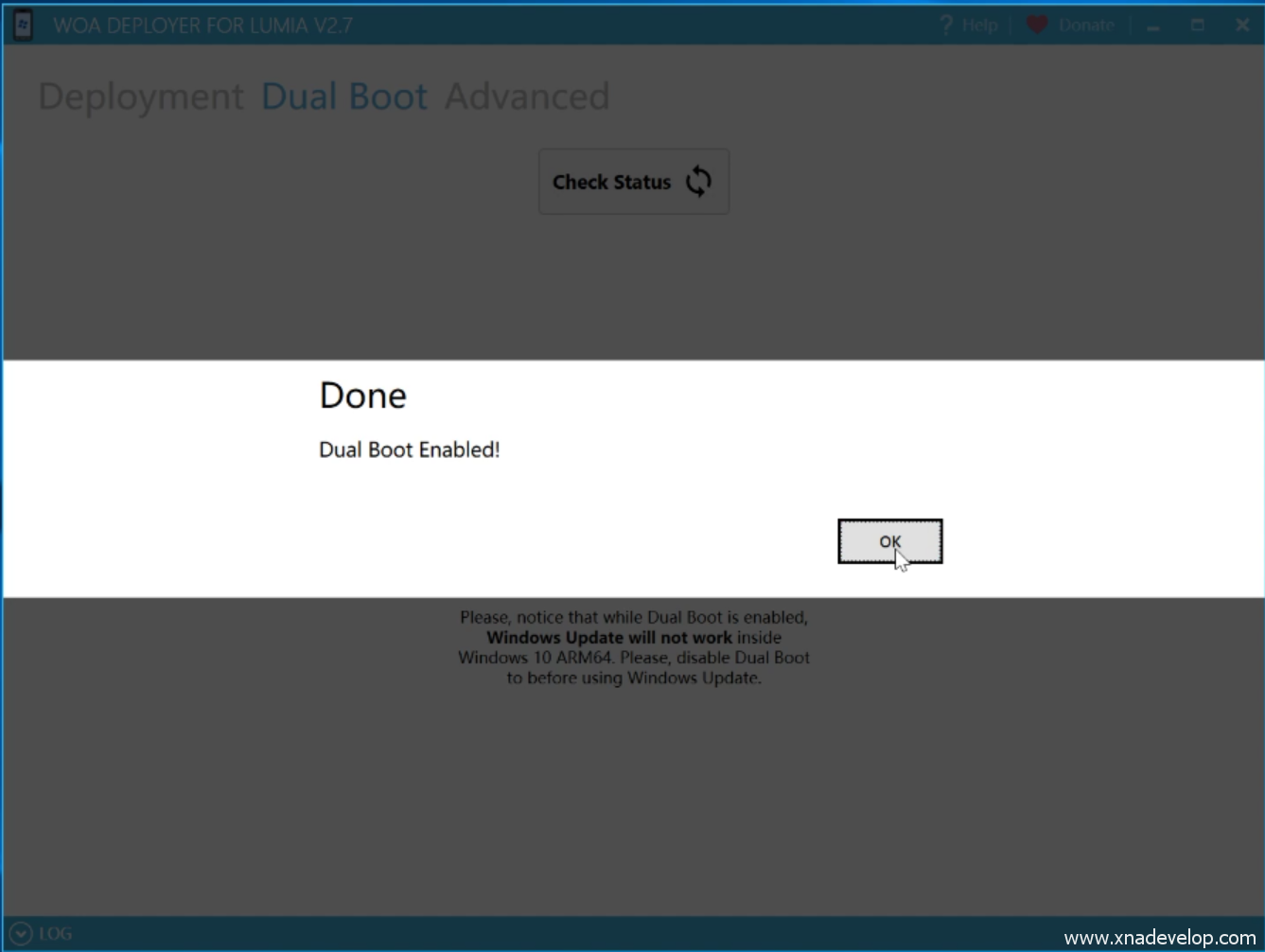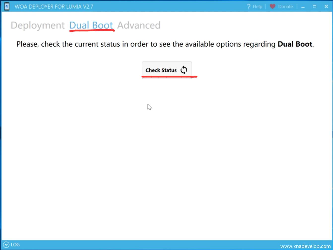 打开WOA.Deployer,选择【Dual Boot】,点击【Check Status】