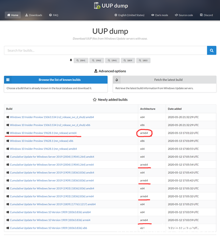 理论上可以选择点击【Architecture】这一列是【arm64】的所有链接下载,但经过测试不是所有的镜像都支持Lumia950XL