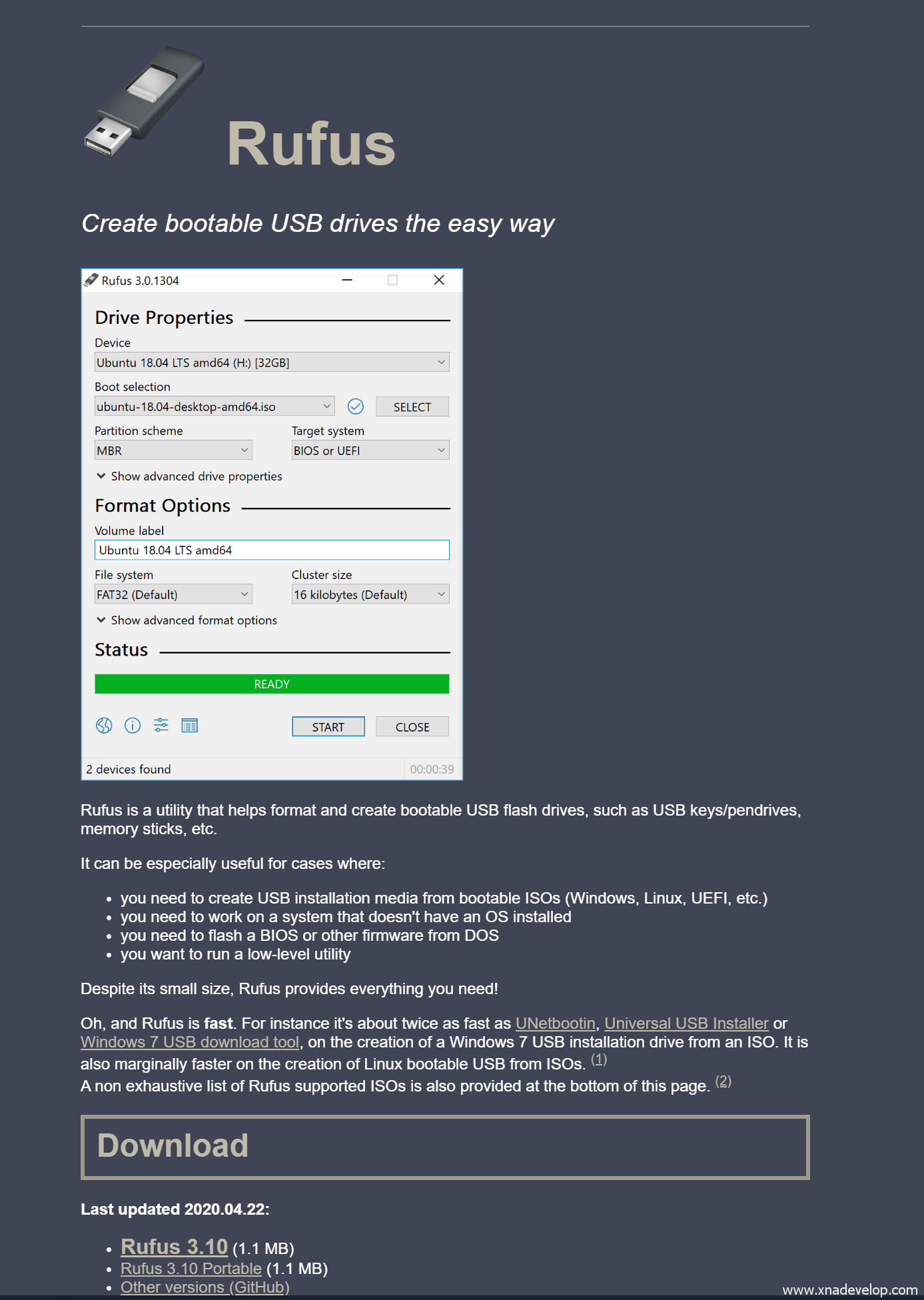 下载刻U盘软件RUFUS,下载地址:http://rufus.ie/