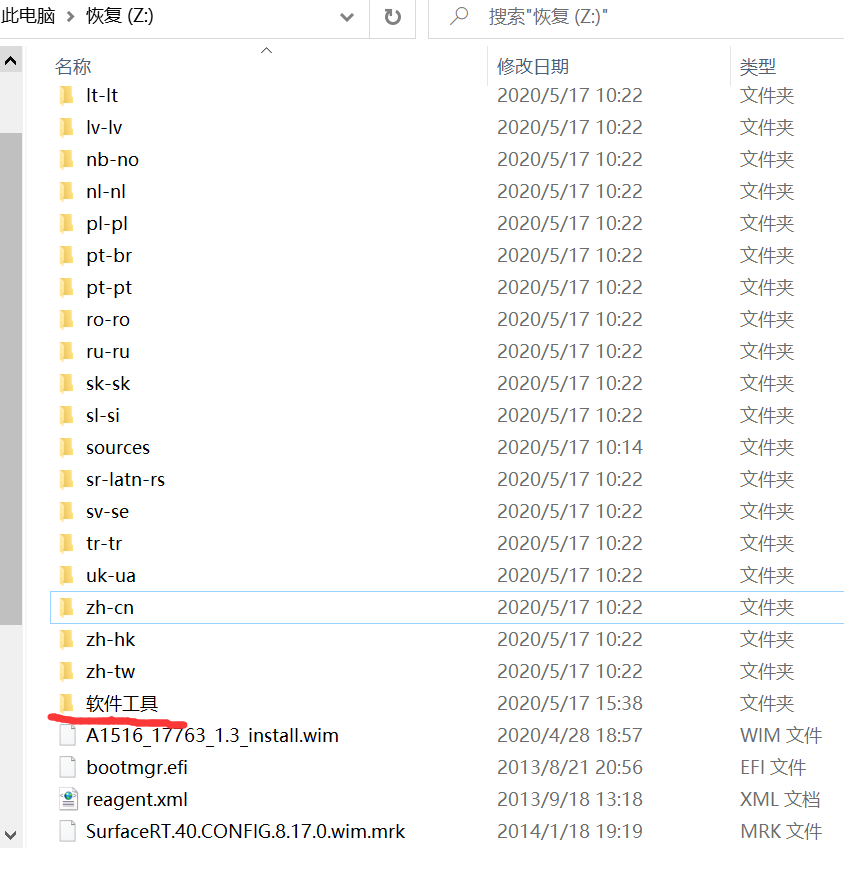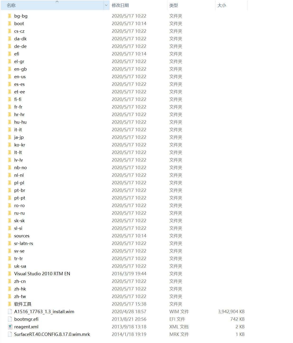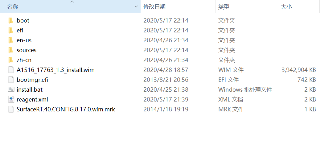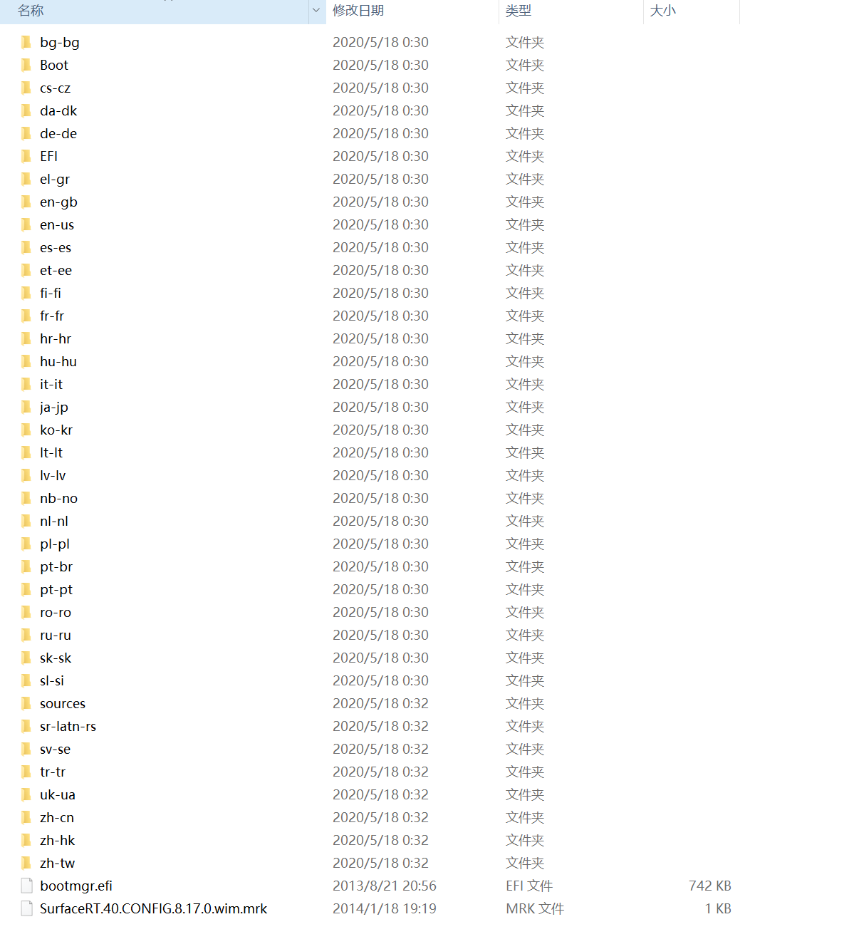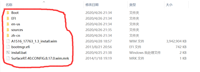 解压【SurfaceRT_BMR_40.8.17.0.zip】,将解压后的文件(如下图),拷贝到U盘的根目录
