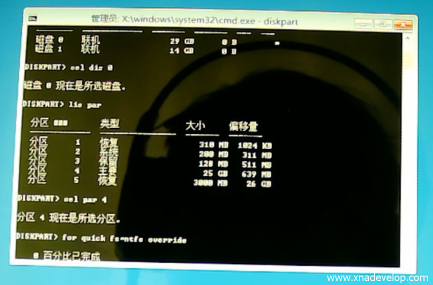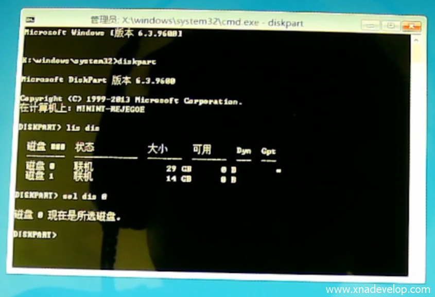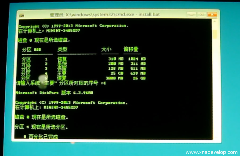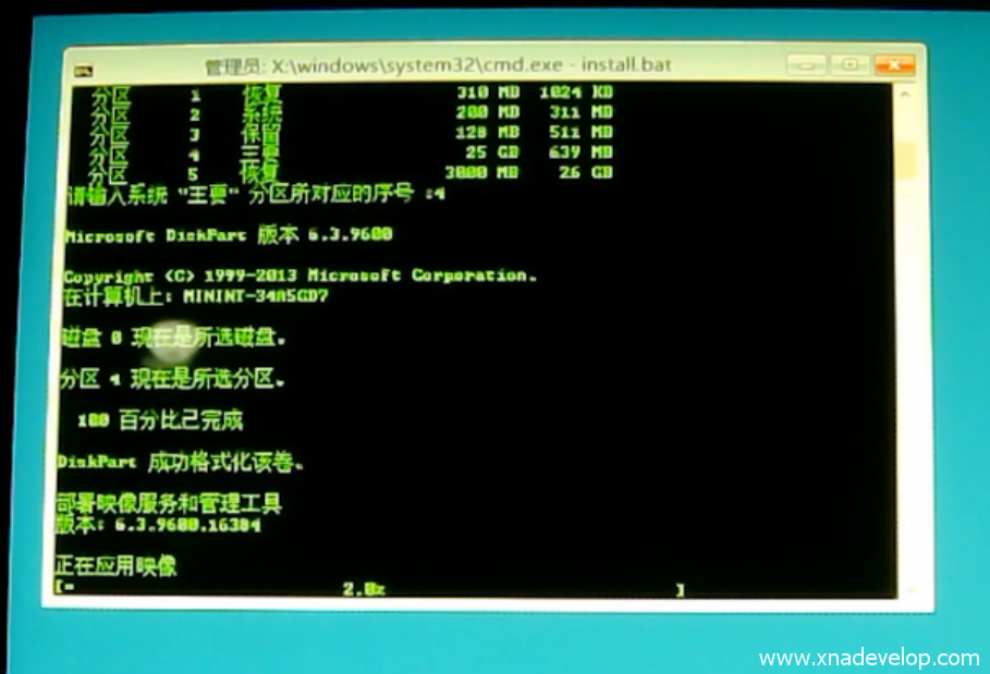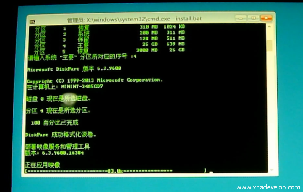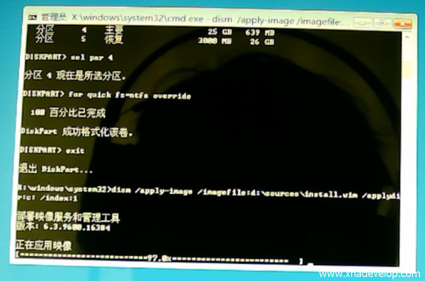 输入【dism /apply-image /imagefile:d:\sources\install.wim /applydir:c: /index:1】