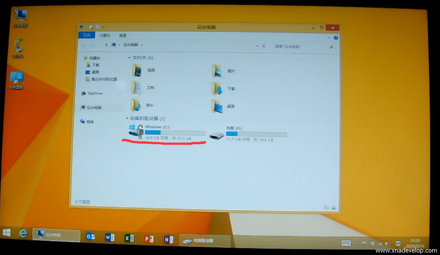 进入系统后,打开这台电脑,C盘上已经没有了锁的图案,看下图: