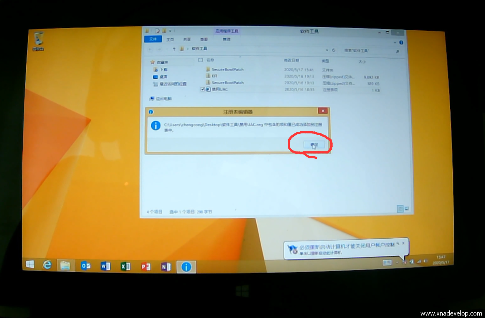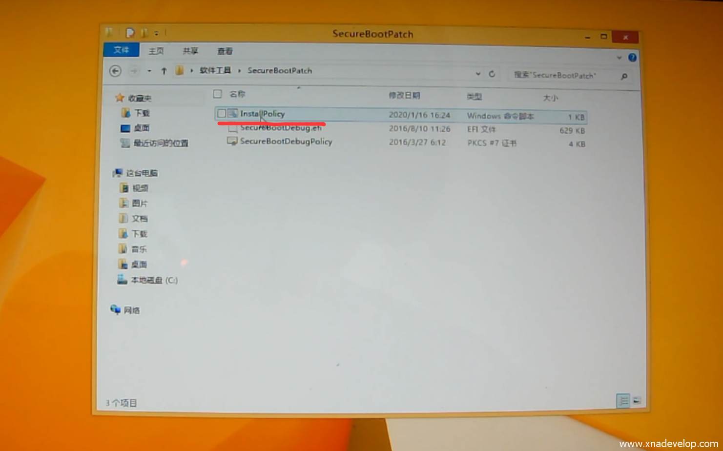 关闭注册表,打开桌面的【软件工具】文件夹,打开【SecureBootPath】,【以管理员身份运行】【InstallPolicy】