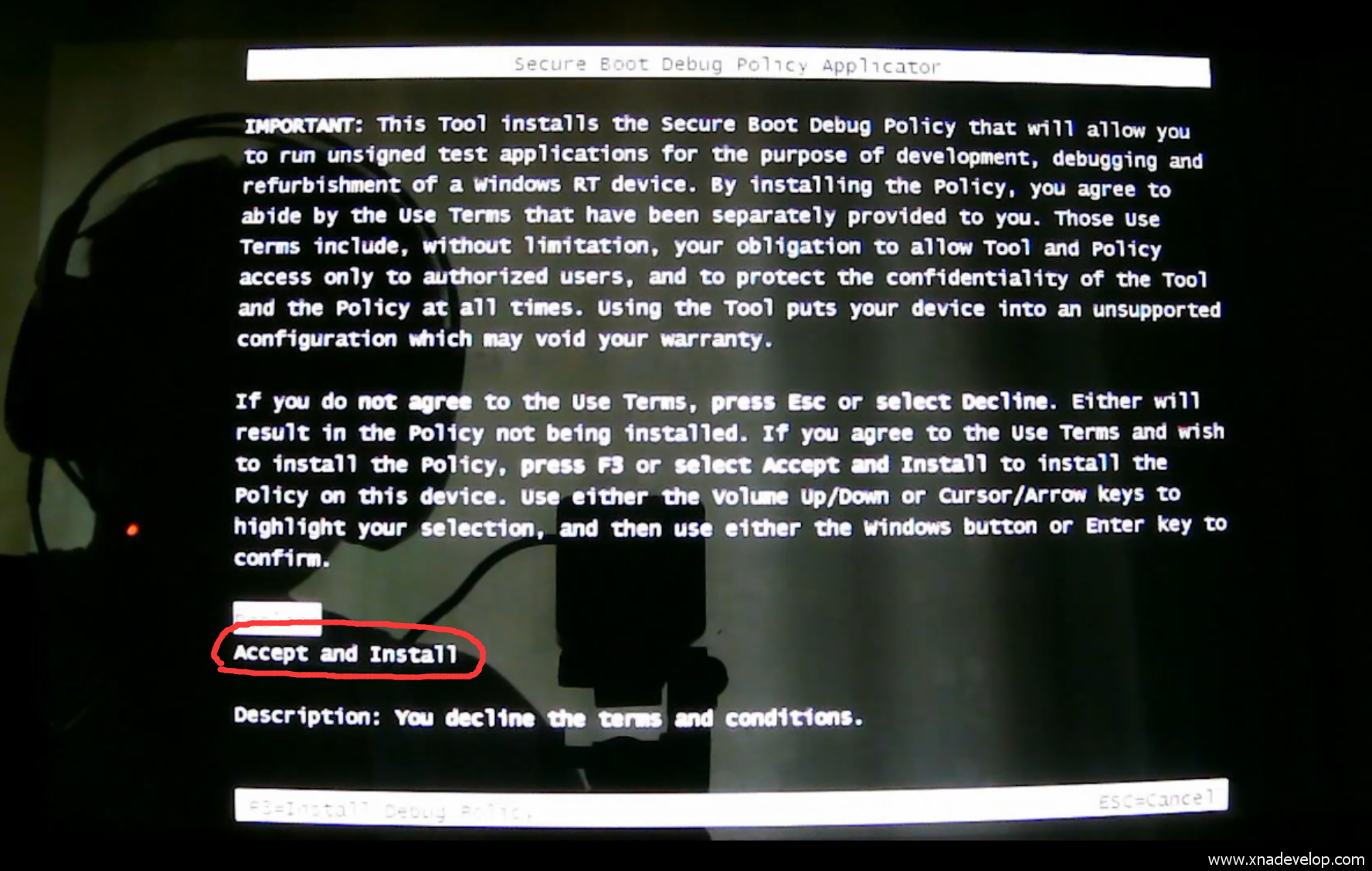 完成后重启!插上USB接口的键盘。按键盘上的方向键上下来选择,选择【Accept and Install】【回车】